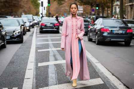 近两年来粉色已经弥漫在每一个街头,2018Pantone新推出的流行色——淡山茱萸粉简直是为女生量身打造的一抹颜色。粉色大衣配什么裤子才能将时尚与温度兼具呢?