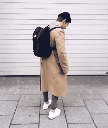 皮面的双肩背包造型比较挺阔,与西装的质感很相配,所以搭配西装也完全没问题。
