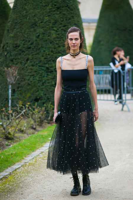 卫衣混搭浪漫的半身裙,再加上手上一只黑色手拿包,整身造型很独特个性,又不失年轻的街头感。