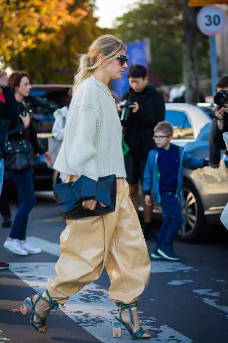 温柔的毛衣和干练的手拿包混搭在一起,尽显优雅女人味哦。