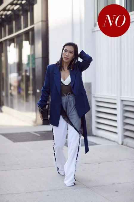 最常见的错误方法,就是许多人都喜欢穿厚底鞋,因此让自己能够在视觉上有着显高的效果!但其实**厚底鞋在搭配校服裤的时候,不仅没有显高,反而显矮,显得过于笨重!