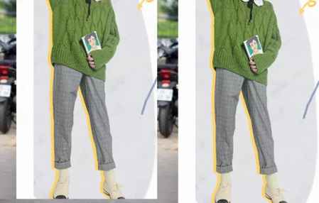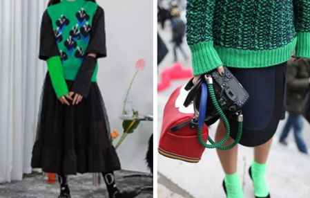 5.绿色和灰色也是十分潮流的搭配,灰色低调,绿色刚好突出一点亮眼,夺人眼球。这一套颜色搭配是内敛却不平庸的搭配,个性十足。年轻潮流女孩必学!
