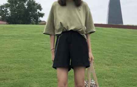 4.绿色和卡其色的搭配,两者颜色相互中和,新颖独特,精妙别致,绝对是休闲旅游的绝妙搭配。搭配一个黑色挎包,颜色简单但不重合,亮点十足。