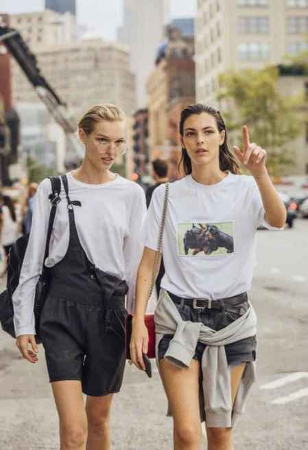 越简约越好看,用一件纯色的T恤搭配短裤,是有点难度的所以我们有时候不妨在T恤上花点小心机。时髦感会来得更加不费力,比如用图案或者字母,也是很时髦的!