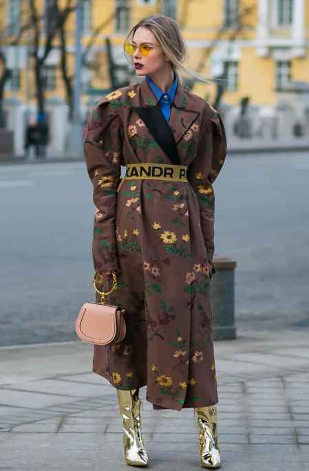 简单利落的外套,在寒冷的冬季我们无法像时尚博主那样敞开来穿,通常都会将扣子扣上,裹得严严实实的,从而在外形上看起来较为臃肿,且没有了女性该拥有的曲线感。配上一条宽腰带,将身材比例展现出来,提高腰线,从视觉上看来腰部一下全是腿。不论是大衣还是皮草外套都可以配上一条宽腰带,时尚、大气,将**衣品提升了好几个Level!