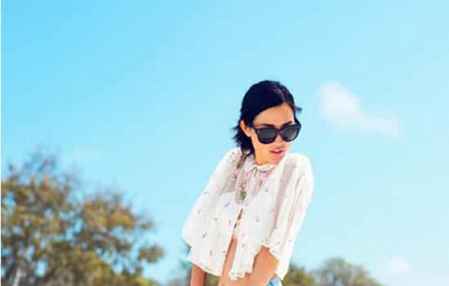搭配看点:精致**的刺绣镂空透明罩衫,搭配一条同样散发青春气息浅蓝色高腰热裤,仿佛随时都准备好了海边的一次放松心情的小度假!