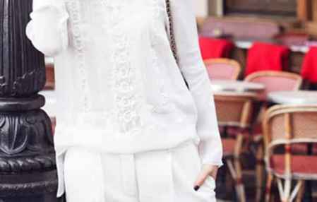 搭配看点:就算是镂空透明罩衫也可以让你穿出成**人味哦。这样一件复古中领蕾丝透明长袖上衣就几分文艺青年的感觉,搭配一条休闲的白色长裤让你随性又自然,脚上的**活泼的猫耳朵单鞋搭配得很出彩。
