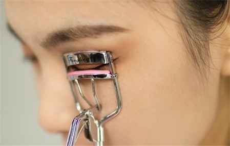 先调整一下假睫毛的梗,让它更适合**人的眼型,之后剪下假睫毛的后半段,贴在眼尾,增加眼妆的深邃感。刷好睫毛膏后再夹睫毛,让真假睫毛融合得更加完美。
