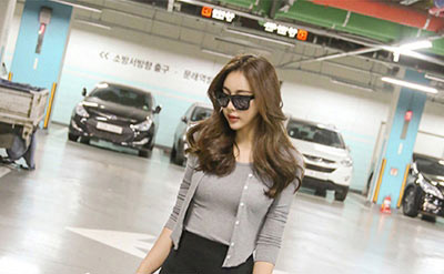 搭配看点:黑色修身长裙,颜色很百搭,但穿上灰色T之后,精致的短款设计,突出利落感,内扎的穿法,修饰出完美身材,格外有性感的魅力,简约的灰黑色搭配也有气质。