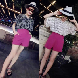 搭配看点:还是搭配黑白色系的上衣,适当融入格纹、印花、条纹等潮流元素更添时尚魅力。同时也可以在配饰上多**思,搭配一定个性的礼帽与摩登气息十足的墨镜,轻松打造时髦感,让玫红色裤子更显气质和时尚。