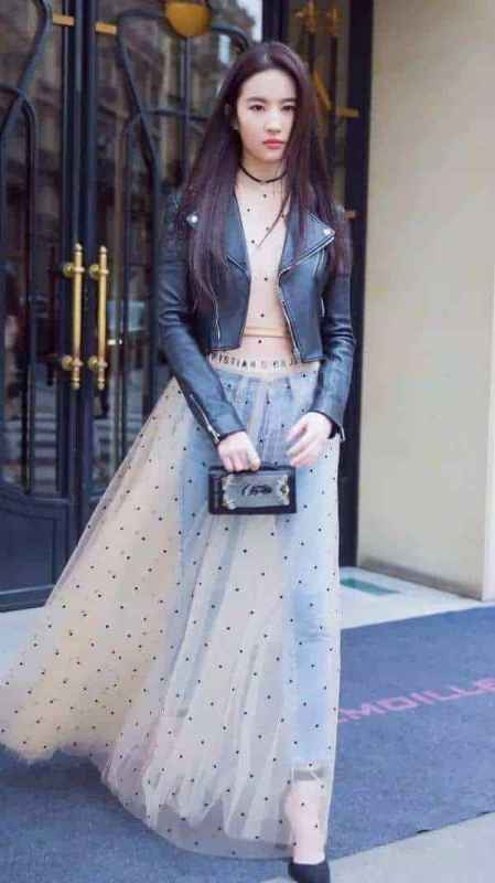 而类似的设计,还有很多。比如牛仔裤外面套裙子,天仙的颜值,还是很能撑起来的。不过这样穿,顶多是看着特别,不至于奇怪。