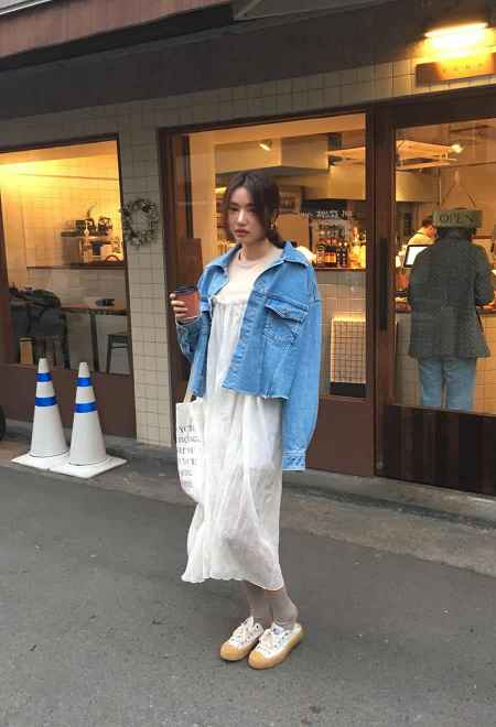 如果你是一个甜美**的小仙女,那么牛仔外套搭配纱裙更能符合**气质,冬天撞材质搭配更让人惊艳,时髦的一眼认不出哦。