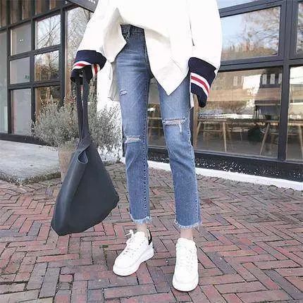 阔腿裤早就过时了,2018流行高腰修身牛仔裤,轻松穿出大长腿!牛仔裤女宽松九分ins超火原宿直筒chic阔腿九分长,搭高跟鞋、平底鞋或者是休闲鞋都会很时髦,不会单调无趣,彰显个性,凹造型敲实用,简约口袋增加了一点小装饰更加令人眼前一亮,采用小脚修身版型,彰显纤细瘦身材。