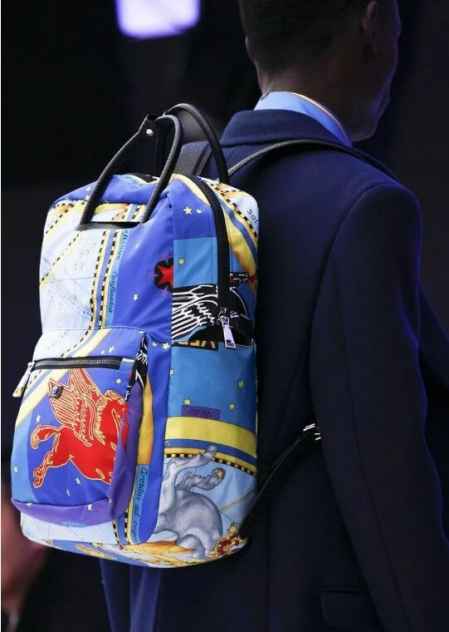 动物元素的运用是Versace不变的标志,展现出野性魅力和自然淳朴,但这款双肩包则更加孩子气,华丽的色彩运用和动物拼图,使整个面包铺满色彩,一身西装加上此包,更是青葱少年进入办公室职场的懵懂感。