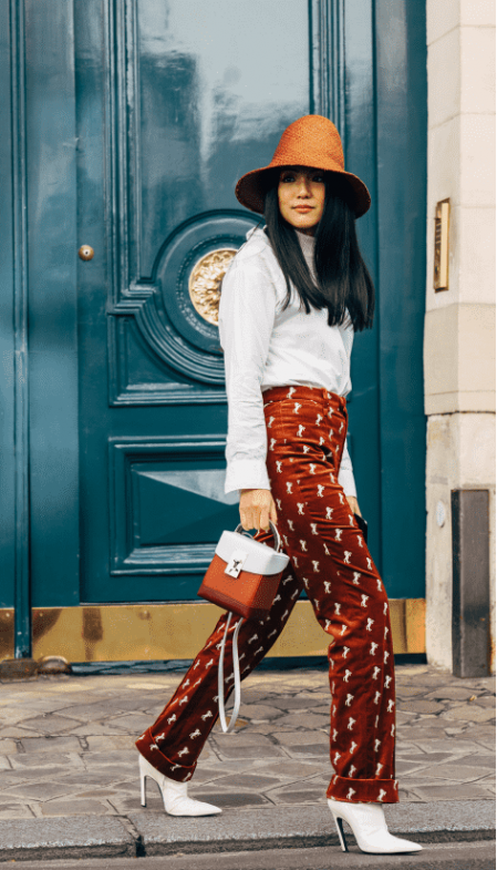 将高领衫穿在衬衫里面,妥帖地抵御脖子周围的寒风又十足优雅,搭配暖色灯芯绒长款,更显复古甜美气质。