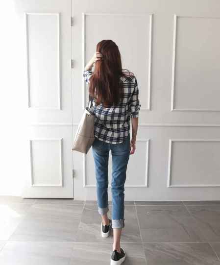 清新的蓝白格子衬衫搭配七分裤,露出纤细脚踝,再穿上一双帆布鞋,减龄不止一点点,也正是现在最高街的日常穿搭呢。工作日太过于枯燥,周末不妨换上这么一身轻松一下。
