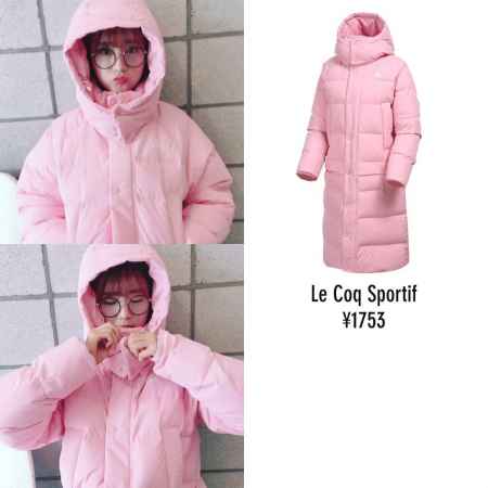 小仙女郑采妍穿的黑色羽绒胸前有贴布装饰,这样看还挺好看的。