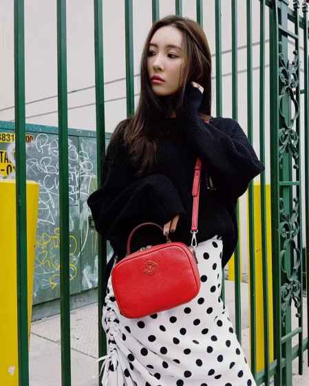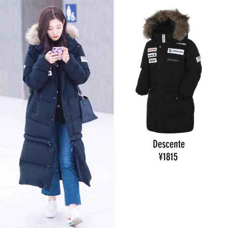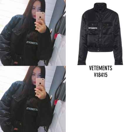 连一向爱露腿的宣美最近都穿上了黑色羽绒夹克,来自著名潮牌vetements,很贵。