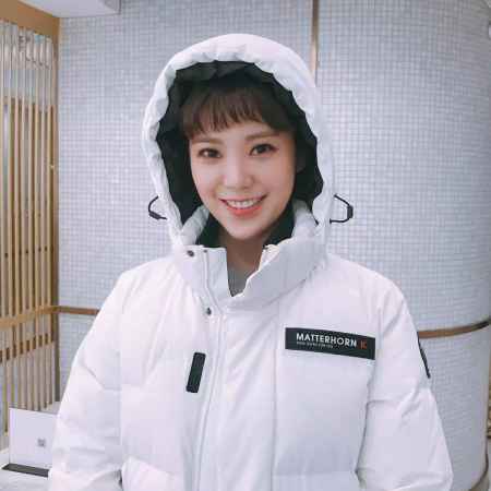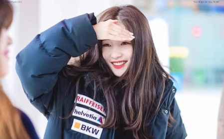 在《今生是第一次》里让人印象深刻的尹普美,其实也是APINK主唱兼领舞。穿了一件蓝色中长款羽绒出现在应援车前。