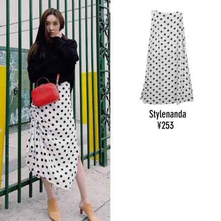 让人意外的是,这条波点半裙竟然只要200多块,而且很好买,就是Stylenanda的。