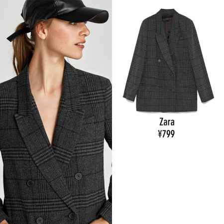 她这件太贵了,不妨找一件今年超火的格纹西服外套,Zara有很多。