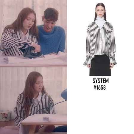 最近参演了“Standing Egg”的新歌MV,在里面穿的V领条纹衬衫来自System。