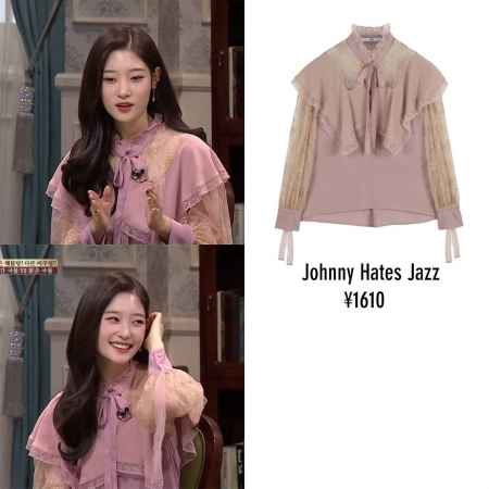 这件胸口和袖子采用透视蕾丝处理的衬衫来自一个叫Johnny hates jazz的韩国品牌,很多韩国女明星有穿。她家衣服都是这种大小姐风,我还蛮喜欢的。