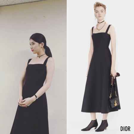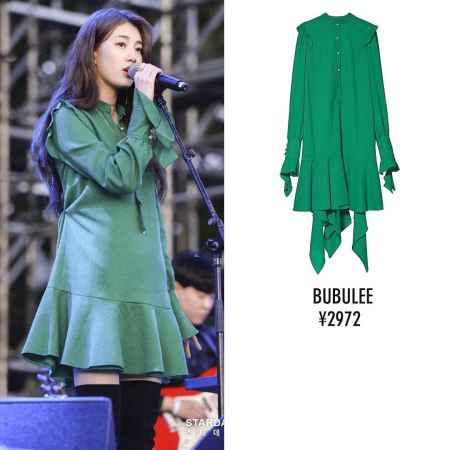 主演的电视剧刚迎来结局的秀智,近期都是穿着连衣裙和大家见面。有剪裁独特的绿色长袖短裙。