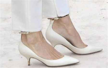 经典的尖头鞋款式有很多,Roger Vivier的经典方扣镶钻尖头高跟鞋,相信大家一定眼熟。这款鞋子就挺适合脚宽的女生了。尖头虽然是有点长的款式,但胜在有一个大大粗方扣打破了纵向视觉。搭配短裙的时候,开口弧度大,加上方扣的点缀,脚掌看起来更修长好看,不过小腿较粗的女生就要谨慎选择了。