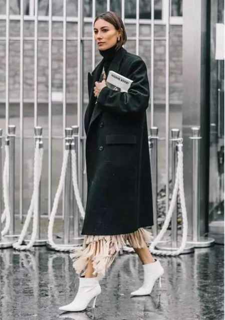 在冬季的All Black行头里,大衣、针织衫、裙装,各种大件的随意混搭就能玩出不同风格Look,都时髦经典,永不过时。