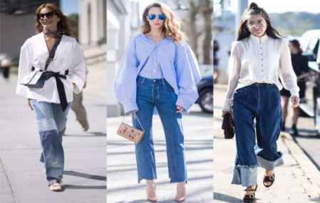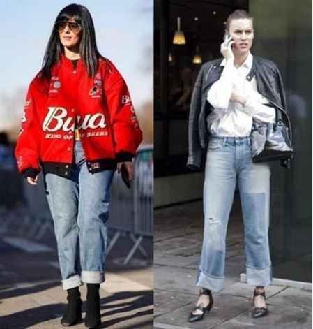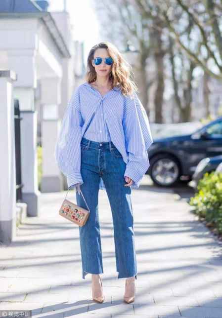 在今年的很多杂志街拍上,不难看到老爹裤在设计上还有了一些创新。
