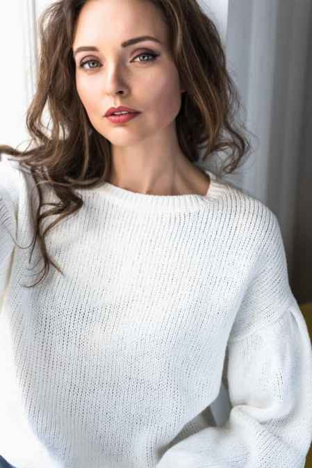 这条针织连衣裙,长至膝盖正下方,修身的版型凸显出完美曲线,非常的性感。纯洁的白色,优雅迷人。脚踩一双时尚高跟短靴,更显高挑秀气!