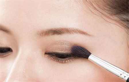 用浅棕色进行打底,范围在眼窝内,着重打在眼头的位置,和鼻影自然衔接,比较适合天生的肿眼泡。