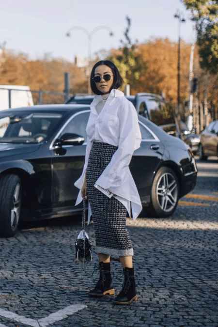没有半裙就用长款卫衣来替代,也是别出心裁的穿法哦,用挖空的衬衫带来细节的呼应,想不时髦都难!