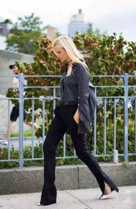 条纹类的衬衫这几年算是风靡,特别是oversize款,怎么穿都好看时髦。
