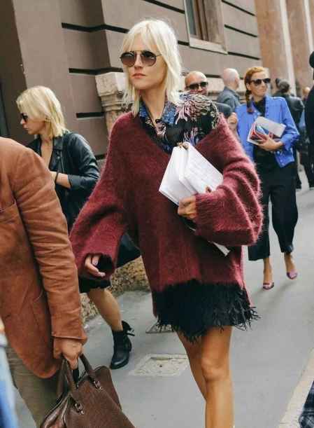 玩腻了衬衫做毛衣内搭,今年流行将衬衫反穿在高领毛衣外,更高级显气质。