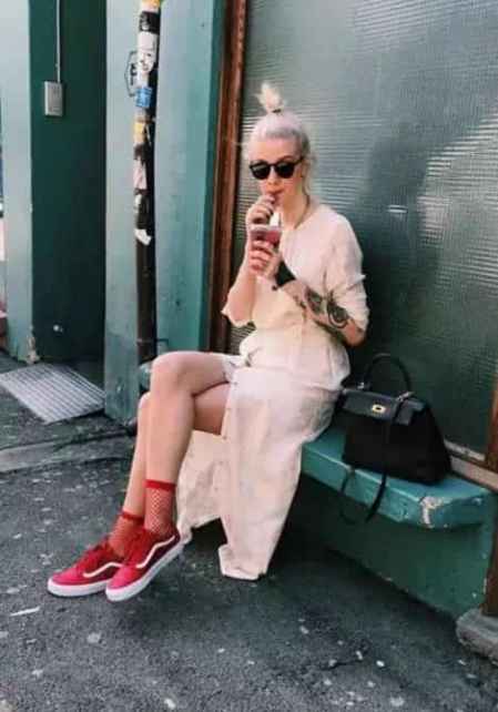 08-02 阅读(888)高跟鞋配连衣裙似乎是众所周知,但是对于穿不习惯的小可爱们来说,高跟鞋简直就是噩梦,特别是逛街的时候真的是超级累,小搭真的是受不住的。而运动鞋搭配裙子,完全能hold住呢,既舒适又可以时髦。