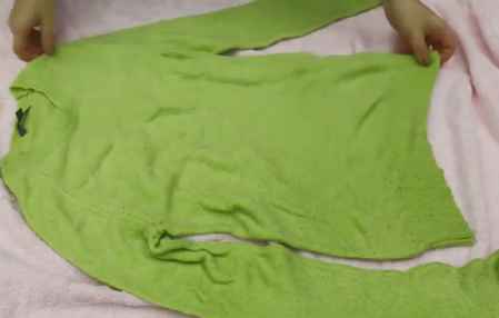 将压挤掉大半水分的羊绒衫取出,找一款大毛巾平铺在桌面,然后将洗过的羊绒衫展开放在毛巾上,再将毛巾卷起,然后稍稍施力,让毛巾尽可能的吸收羊绒衫水分,这样羊绒衫就与脱水的步骤相近了。
