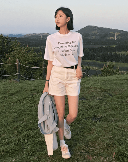 比起深色系浅色看起来会更加有气质,而且十分阳光,阳光明媚的夏日纯白T恤配上一条米色牛仔裤,然后穿上小白鞋出门别提多吸晴了。