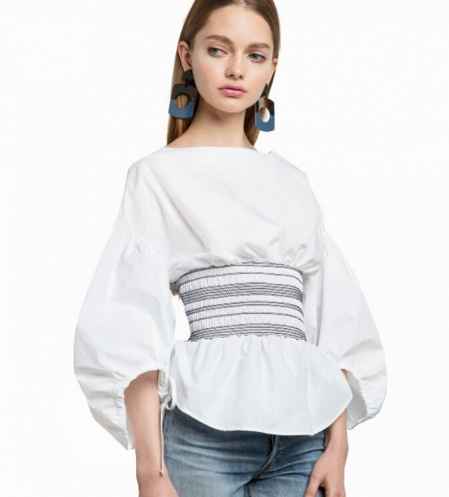 波点衬衫估计是每个女生衣橱里面必备的一件单品,尤其是抽绳的白色波点衬衫是非常火热的,因为运用抽身的设计使原本衬衫显得没有那么单调,会让我们整体的搭配更加有设计感和层次感,抽绳的设计还能够在视觉上拉长我们腰部线条,同时还能够更好的遮肉显瘦,衬衫属于v领的设计能够更好的展现我们精致的锁骨,同时还能够更好的修饰我们的脸型。