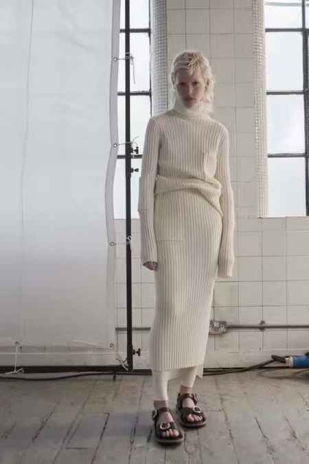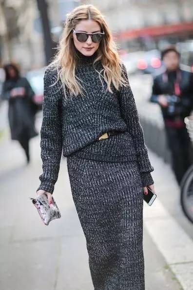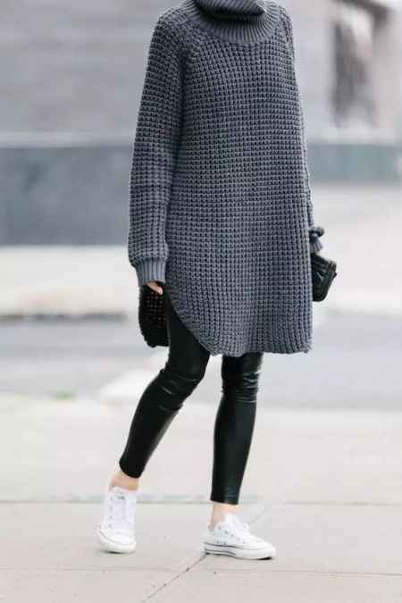 最为常见的裤型就是紧身裤,通过让双腿显瘦,可以使穿着廓形毛衣的我们看起来不是那么臃肿。