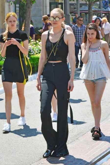 适当的露肤降低了黑色带来的厚重感,而紧身背心则化解了宽松上衣的邋遢感,这个时候再搭配一条极具动感的阔腿裤,即使一身黑衣也美得无懈可击!