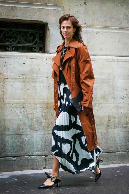 焦糖色大衣配上连衣裙透露着优雅的复古感,也不失若隐若现的小性感。