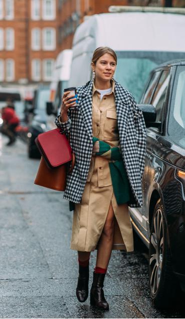 格纹大衣搭配连衣裙,优雅气质与英伦范的完美融合,再搭配上高跟鞋,不论是通勤look或者下班约会look,通通都能帮你搞定。不知道格纹大衣如何搭配的小仙女们,赶紧拿出衣柜里的连衣裙出来吧,让你一整都温柔美丽又大方。