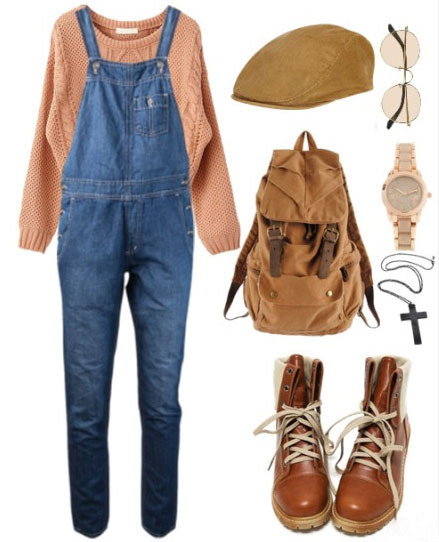 春装毛衣背带裤搭配 青春休闲风一样很有型