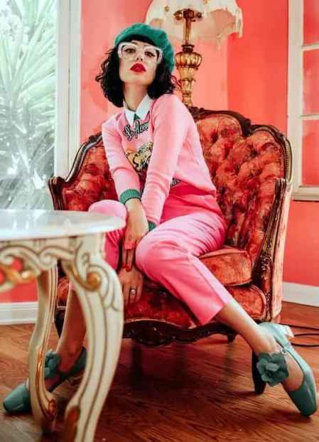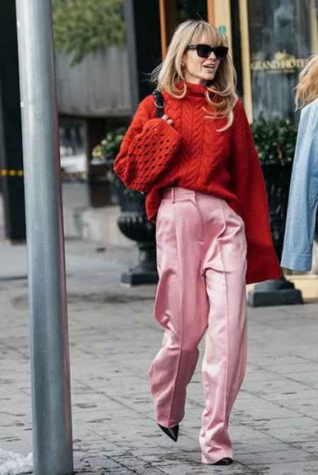 大胆前卫的红配绿,往往需要穿着者本身拥有强大的时尚气场和鲜明立体的五官才能驾驭得当,但是将强势的红换成平和的粉,就不那么难了,能轻松自在地获得一副复古柔情的风韵。