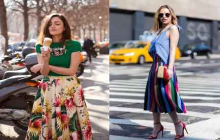 那花衣配素群可不可以呢,可以是可以。但是难度会增加一些。因为上衣花纹图案稍有不慎就容易显得人老气,而下装是碎花式样的就不会那么容易出错。所以小七更推荐上半身素色,下半身花色。避免头重脚轻的效果。