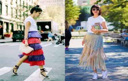 白T的是非常清爽的选择,上半身的足够简单让下半身的范围更广(更骚),就连这种草裙装也能妥妥hold住