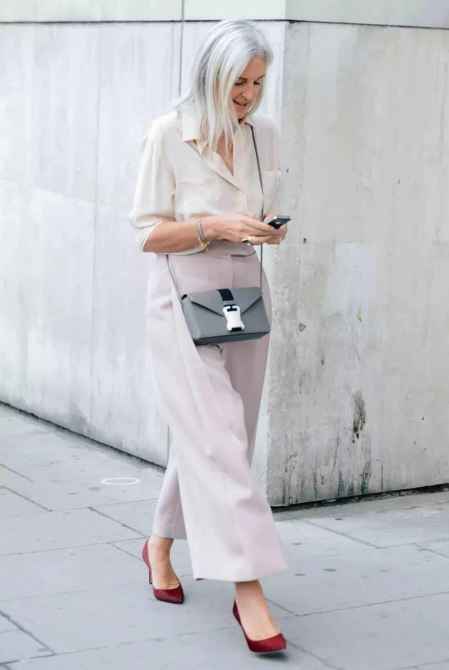 上班不想穿得太**,搭配衬衫就可以,选一条浅色偏灰色的粉裤子就可以。