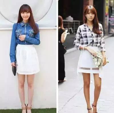 ④宜穿长T恤式的衫裙,衫身狭长不卡腰,可使身材见长。